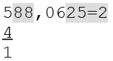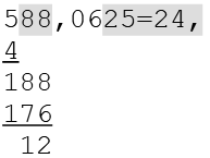 Der Rest der Subtraktion ist Null, die Berechnung ist damit beendet. Das Ergebnis lautet.