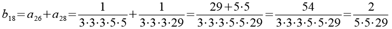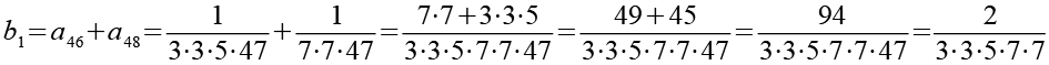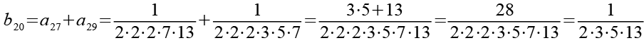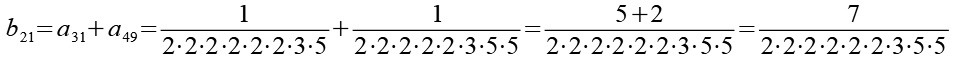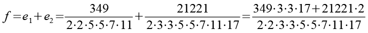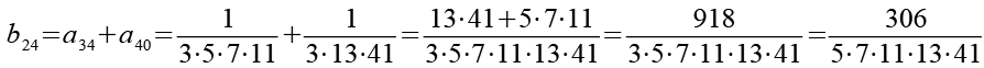 Um das Addieren der Brüche zu vereinfachen habe ich von den 48 Nennern die Primfaktorzerlegung berechnet.