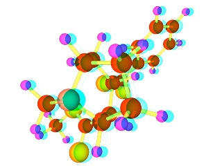Das gesamte Molekül befindet sich vor dem Monitor und schwebt ein weites Stück vor der Mattscheibe. Am besten läßt sich das Bild aus 1 bis 2 m Abstand zum Monitor betrachten.